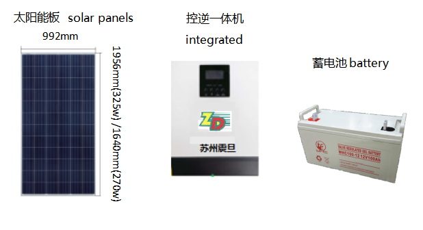 Solar panels325w*5,batteries 12v100Ah*6、2kva integrated machine